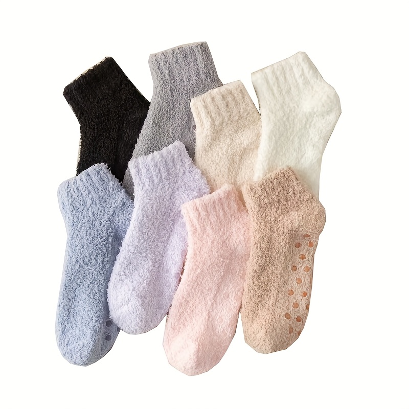TEMU 가을/겨울 랜덤 3/5켤레 여성용 코랄 미드 캐프 양말, 솔리드/라이트 컬러, 플러시 소프트 따뜻한 미끄럼 방지 점 그립 홈용 양말