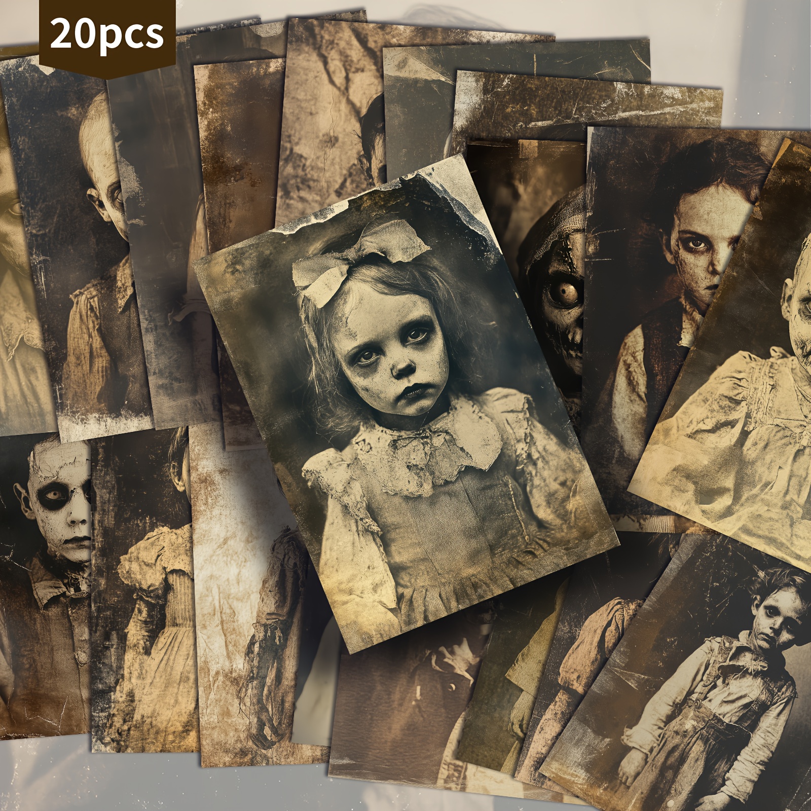 TEMU 20팩 ASSTSS 빈티지 호러 스푸키 인형 엽서 - 4x6 인치 잡지 종이, 소름끼치는 인형 아트, 스크랩북, 공예, 할로윈 파티 장식 및 빈티지 핀업 인형 컬렉션용 개인화 가능한 수집 카드