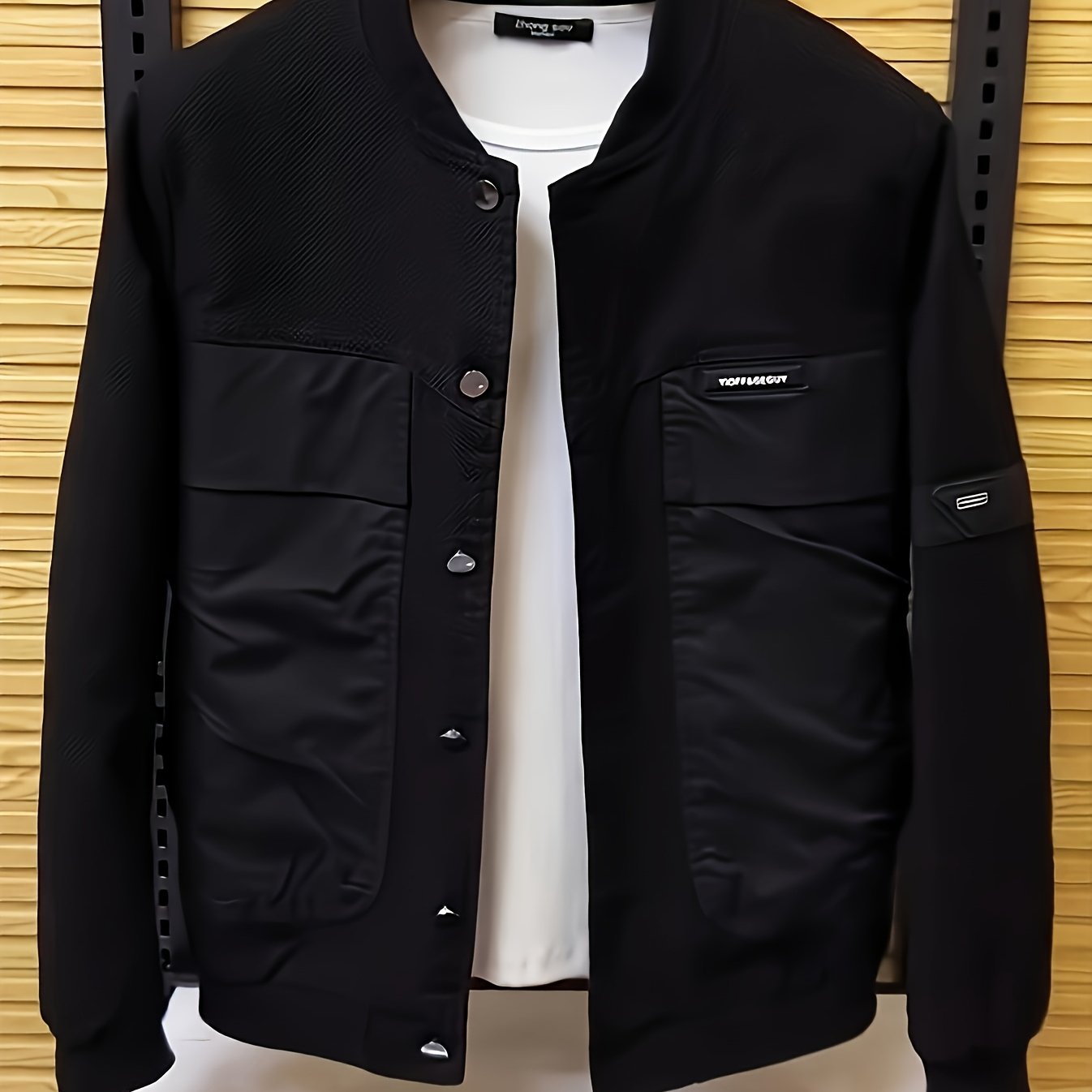 TEMU 남성용 야구 재킷 - 버튼업 경량 코트, 기능성 포켓 포함, 폴리에스터 안감 캐주얼 & 정장용 아우터웨어 - 클래식 패치워크 디자인, 스타일리시한 비탄력 원단