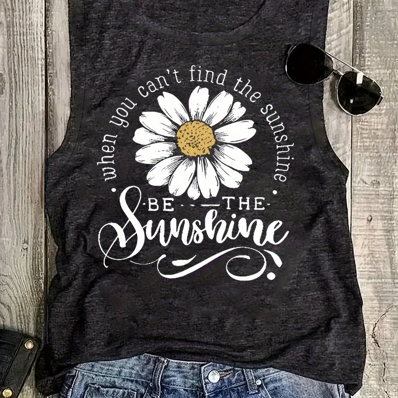 TEMU 여성용 슬리브리스 탱크 탑, 영감을 주는 "Be the Sunshine" 그래픽 프린트 - 올리브 그린 캐주얼 여름 셔츠, 라운드 넥, 가벼우며 통기성이 좋은 원단, 캐주얼 의상에 적합한 여성용 탱크 탑