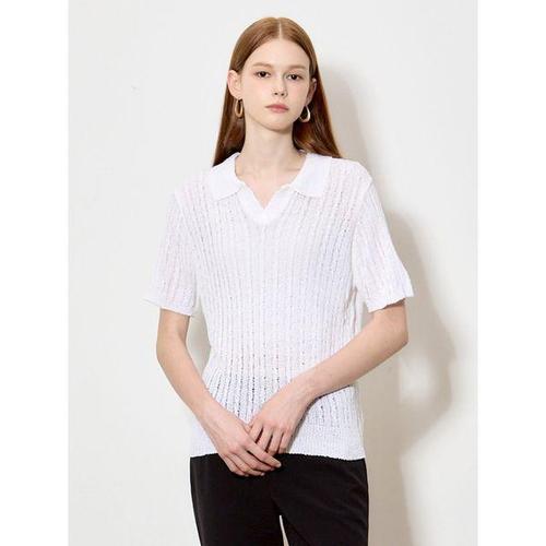 [오조크]케이블 조직 시스루 오픈카라 니트 (택가격: 59000원)