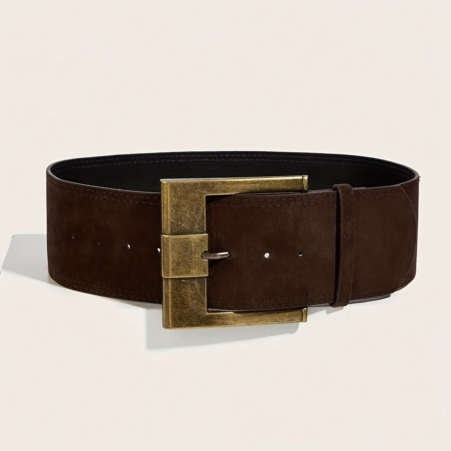 TEMU 여성 빈티지 구리 사각 버클 벨벳 와이드 허리 벨트 1개, 가을, 가을, 할로윈 의상 및 코트에 이상적