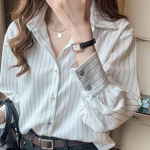 [에이치플러스몰]스트라이프 카라 셔츠 블라우스 ST179