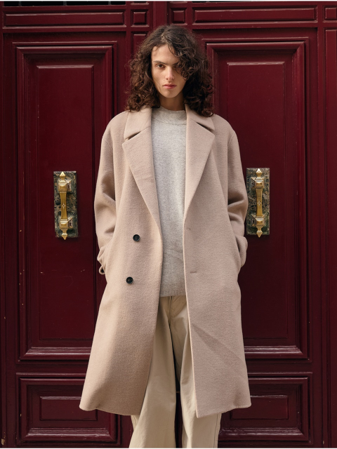 [오조크(OZOC)] 미니멀 울 더블 롱코트 (택가격: 199000원)