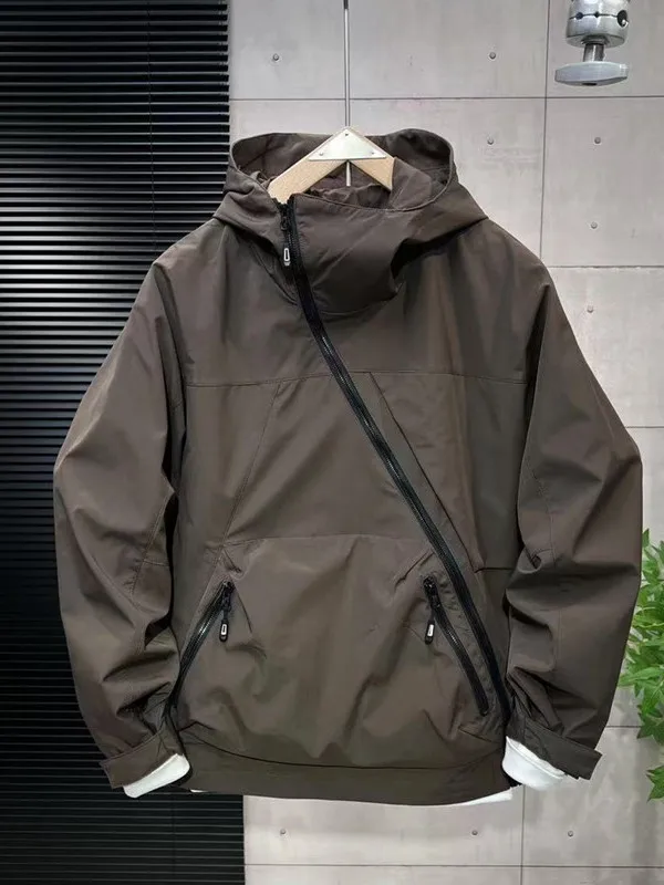 봄 신상 남성 트렌디 워크웨어 재킷 대각선 지퍼 대형 포켓 후드 아웃도어 윈드브레이커 스포츠 스타일 코트