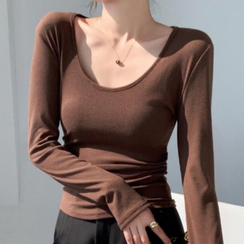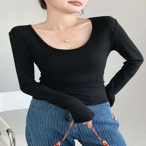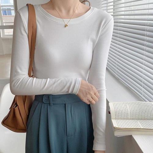 U넥 심플 기본 여성 웜 긴팔 티셔츠 DHH-L16
