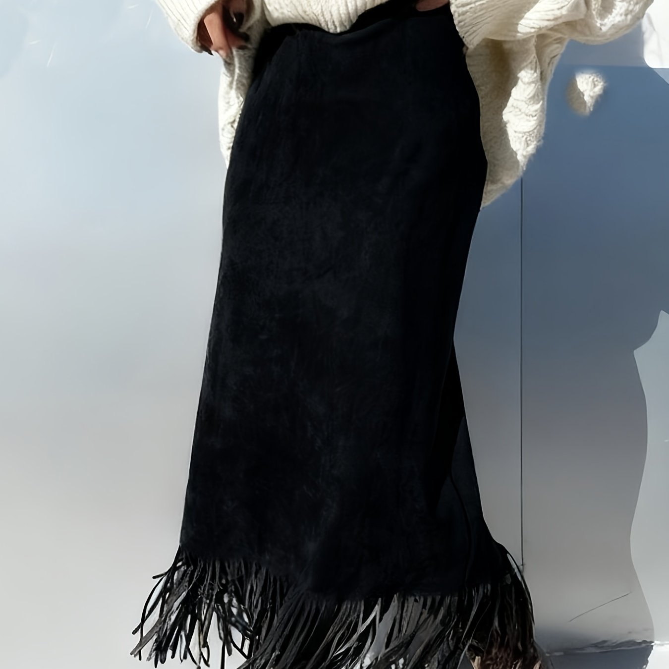 TEMU 여성용 우아한 빈티지 맥시 스커트 - 베이지/ - 비침 없는 포멀 & 캐주얼 팬츠 스커트, 가을/겨울 파티 웨딩 - 여성 패션 하의, 겨울 옷장, 프린지 디테일, 튼튼한 구조, 스타일리시 하의, 오피스룩|빈티지
