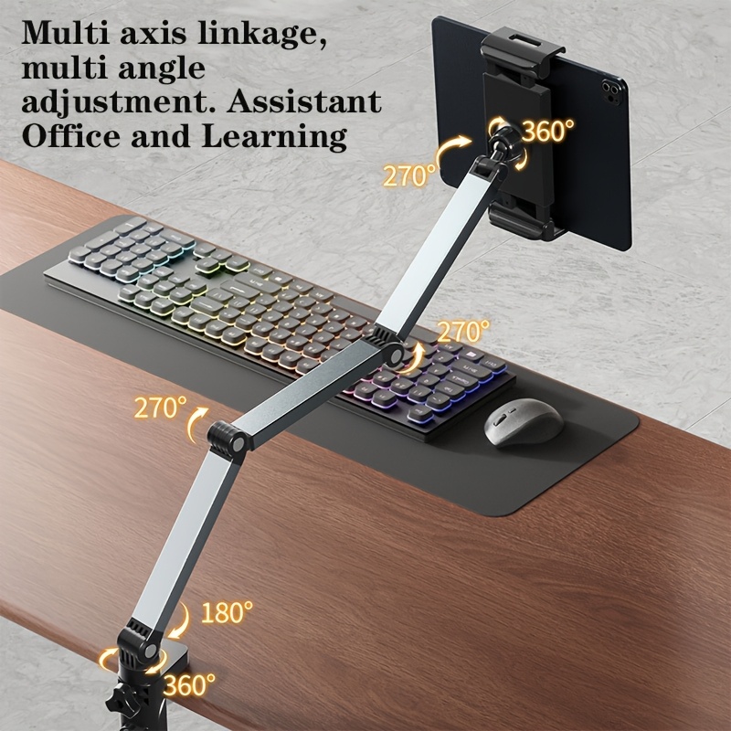 TEMU 듀얼 폰 & 태블릿 스탠드 | 2개의 기기용 조절 가능한 알루미늄 데스크탑 홀더, 360° 회전 가능한 접이식 듀얼 스크린 마운트 (3축 모션 컨트롤), 라이브 스트리밍, 비디오 녹화, 온라인 강의, 사무실 작업을 위한 멀티 앵글 크래들
