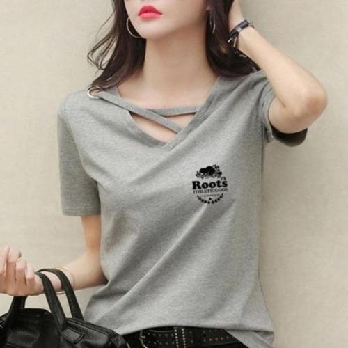 [다잇템_패션]여성 면반팔 민무늬 빅사이즈 딥브이넥 티셔츠