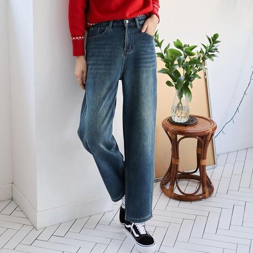 [옷자락]여자 겨울 한파 융기모 세미배기 백포켓 스티치 청바지