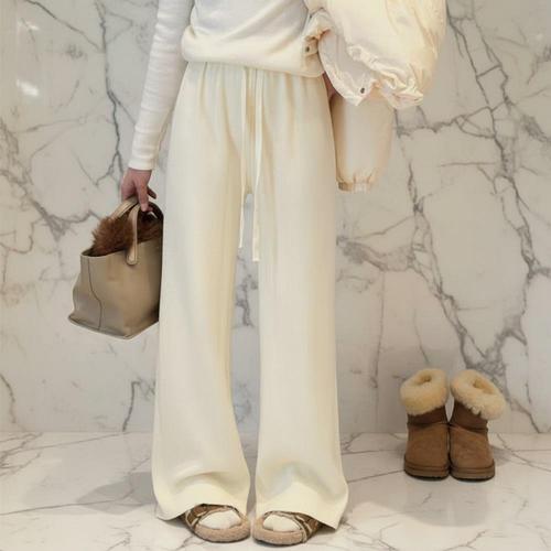 |CCP9598|여성 기모 안감 골지 와이드 스트링 팬츠