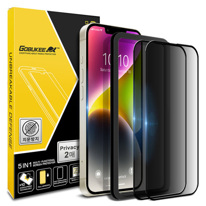 고부기 아이폰14플러스/아이폰13프로맥스 3D 플러스 지문방지 사생활보호 풀커버 강화유리 액정보호필름