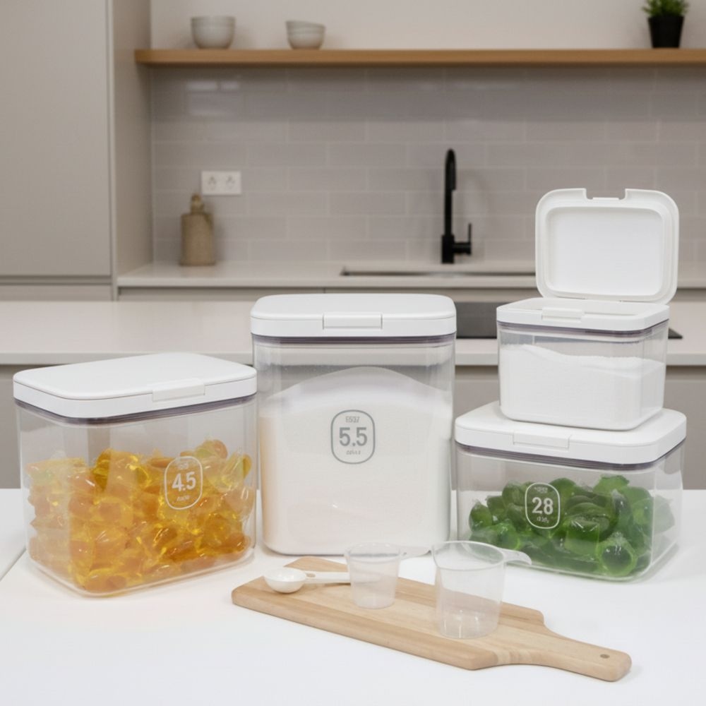 밀폐용 가루 세제통 캡슐보관함 원터치 소분통 4size