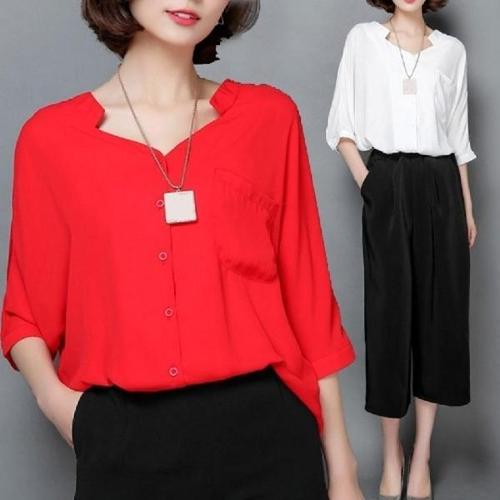 유유가가 여성 여름 오버핏 빅사이즈 시원한 쉬폰 빅사이즈 편안한 셔츠 블라우스 가오리핏