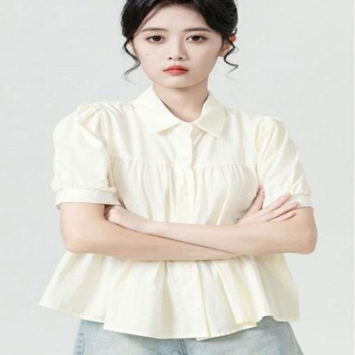 [엄지척]가오리핏 퍼프 셔링 반팔 카라 블라우스_19660833_667501