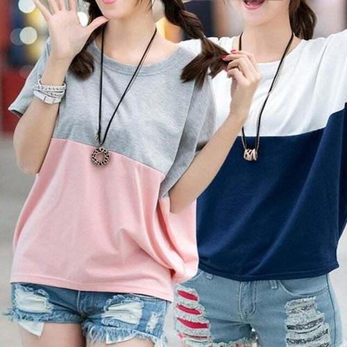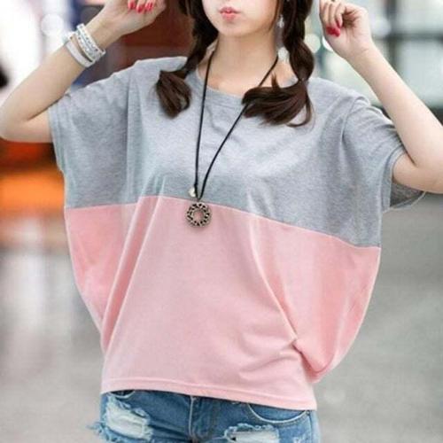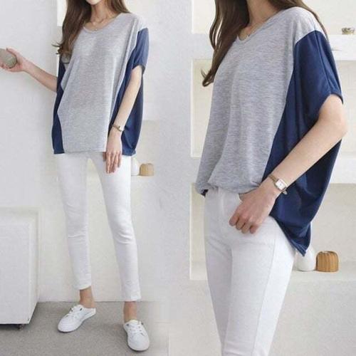 [셀럽하우스]3컬러 GKLC6485 투톤 배색 가오리핏 반팔티 MA8224