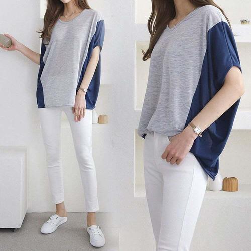 [셀럽하우스]가오리핏 WGJO0325 여성반팔티 라운드 티셔츠 여자반팔티 투톤