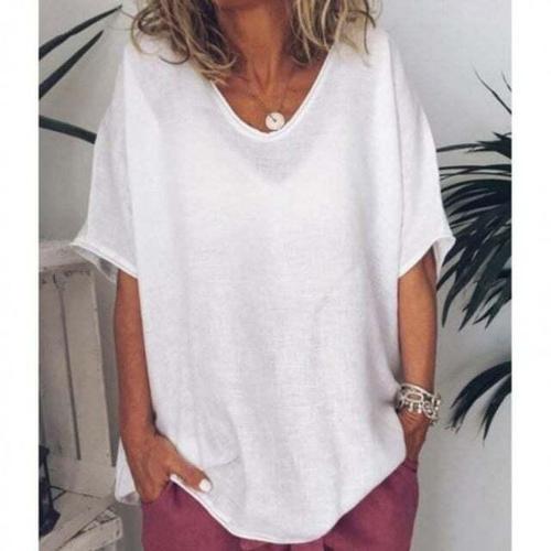ROYALBELLE 여성 라운드넥 루즈핏 빅사이즈 가오리 소매 캐주얼 데일리 반팔 니트 티셔츠 V01020109
