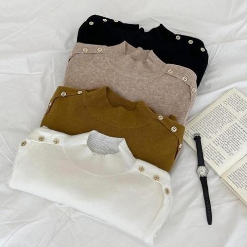 [다잇템][다잇템] 여성 롱슬리브 벌룬 내의 숄더버튼 모크넥 가을하객룩 니트_14827103_588872