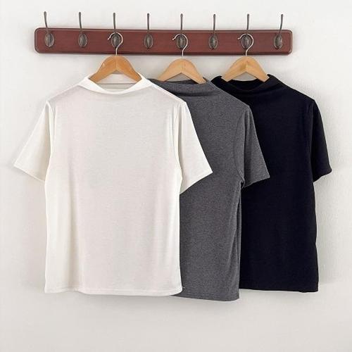 [다잇템]여성 반목티셔츠 가을용 민무늬 무채색 내의 티
