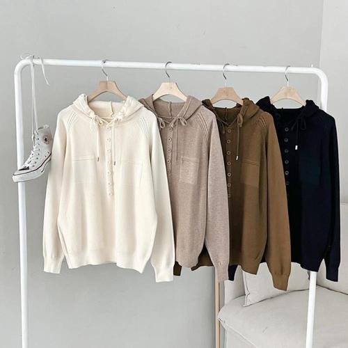 [옷자락] [시즌오프]라글란 골지 크림색 가을 캐쥬얼 후드니트 티셔츠_5