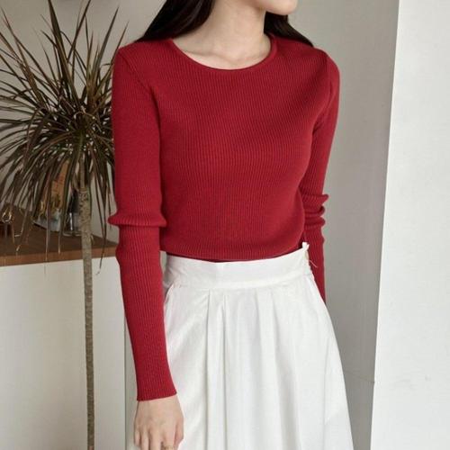 [옷자락] [시즌오프]라운드넥니트 잔골지 버건디 가을데일리 티셔츠_5
