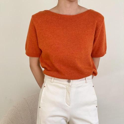 [옷자락] [시즌오프]이너 가을 겨울 보트넥 반팔 니트 티셔츠_5