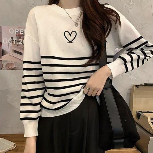 [오너클랜]인기상품 라운드넥 스트라이프 사랑스러운 가을 여자 니트티 [WB14255_260423]