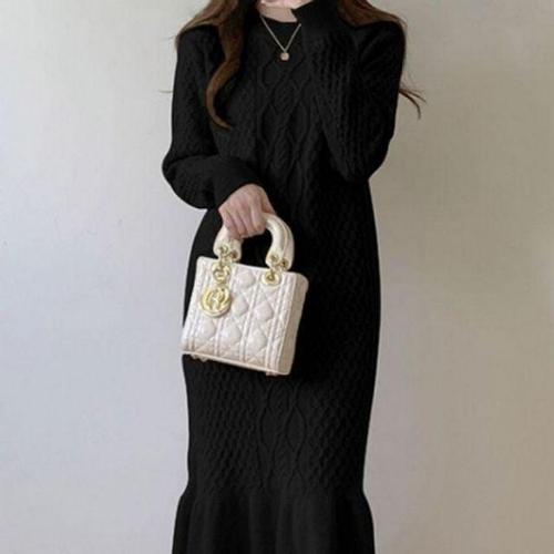 ANYOU 데일리룩 봄 가을 겨울 원피스 프랑스식 원피스 니트원피스 슬림 반폴라 롱 원피스