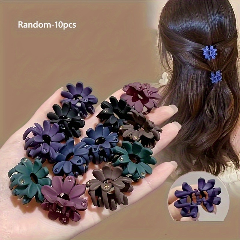 TEMU 10pcs 빈티지 꽃 장식 미니 헤어 클립 - 우아하고 귀여운 단색 플라스틱 헤어 액세서리, 매일 및 정장 스타일을 위한 작은 세련된 디자인, 여성용 헤어 액세서리, 귀여운 헤어 클립, 클로 클립 헤어피스