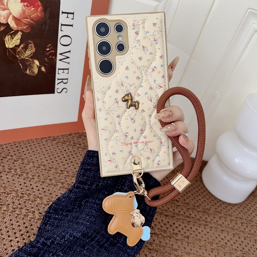 갤럭시 A17 A56 A36 A16 A35 A25 A15 포니 캐릭터 퀼팅 스트랩 케이스