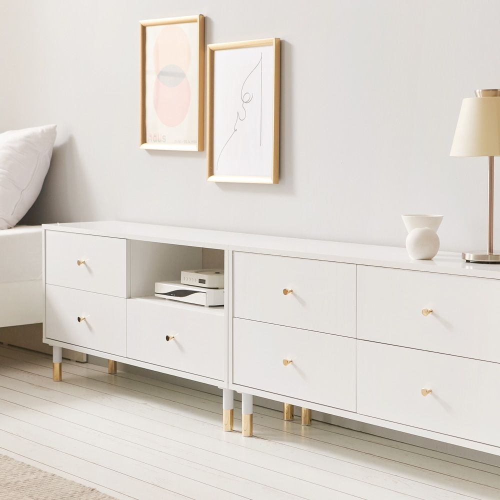 슈비 2700 템바보드 서랍형 2단 거실장 골드다리