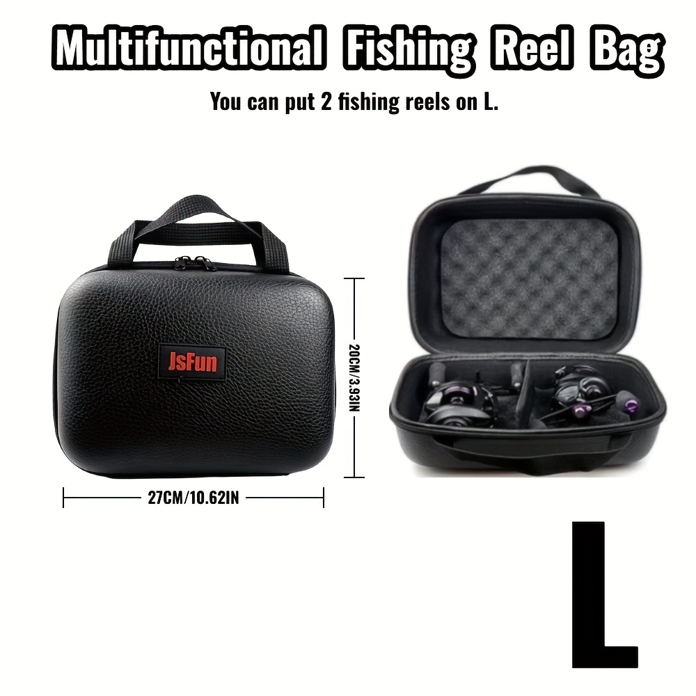 TEMU JSFUN 블랙 하드 쉘 낚시 릴 가방 - 내구성 있는 EVA 소재, 지퍼 클로저, 해양 낚시 및 전기 릴에 이상적, S/M/L 사이즈, 스포츠 스타일, 캠핑 및 야외 활동에 완벽, 낚시 장비 보관|세련된 낚시 가방|지퍼 클로저, 낚시 도구 상자