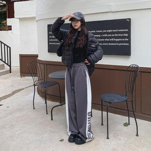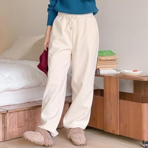 [다잇템]여성 필기체 고무줄 캐쥬얼 와이드핏 보온 팬츠
