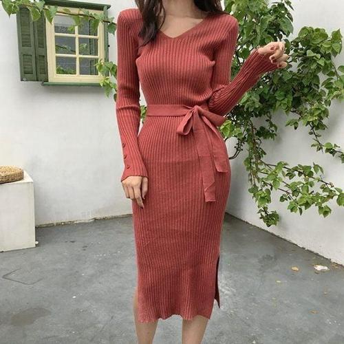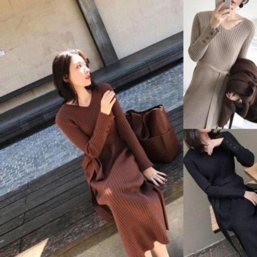 겨울원피스 니트 골지롱원피스 골지 원피스 브이 WFLMUOQ