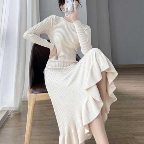 니트 롱 데일리 골지 슬림 원피스 플레어 LL WFLMTUC