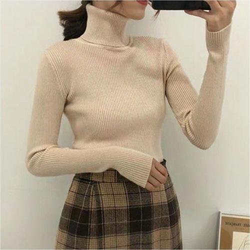 여성 목폴라 골지 니트 이너 슬림 터틀넥 긴팔 티셔츠 WFKLZU6