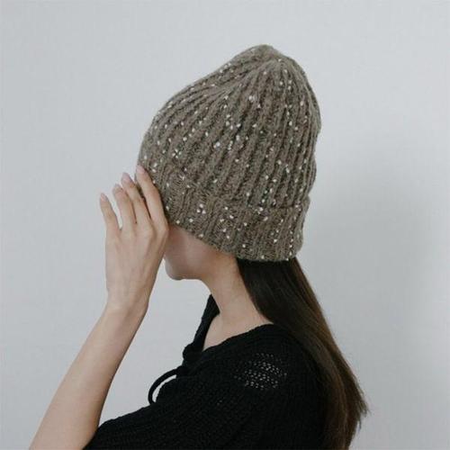 여성 꽃 장식 큐빅 골지 니트 사랑스러운 비니 모자