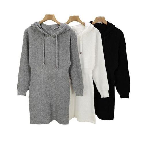 여성 가을 니트 후드 롱원피스 데일리 루즈핏 골지 그레이 니트원피스 데이트룩 홈웨어 free