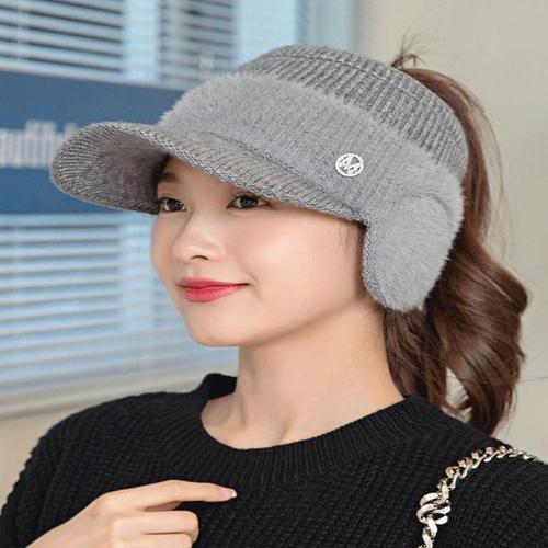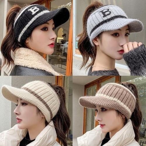 [BZJKDUJX_4B]여성 니트 포니테일 썬캡 겨울 골프모자