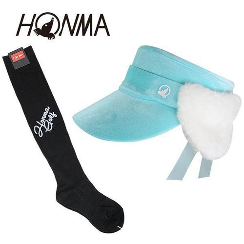 [혼마골프]혼마 여성용 겨울 귀마개 썬캡 골프 모자 니삭스 장목 양말 세트