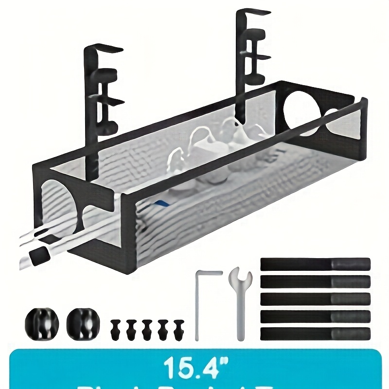 TEMU [이중 구멍 디자인] 책상 밑 케이블 정리 트레이, 쉬운 케이블 접근을 위한 양면 슬롯 디자인, 무타공 금속 메쉬 케이블 정리함, 나사 및 클램프가 포함된 조절식 코드 히더, 사무실 가정용 책상용 대용량 멀티탭 홀더