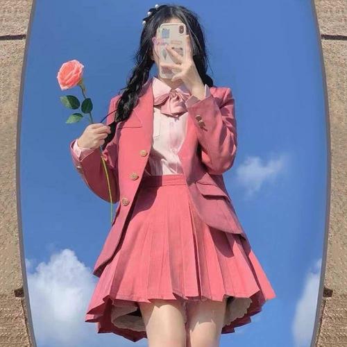 [교복몰]화이트핑크 투버튼 여자교복 풀세트 교복 학생복