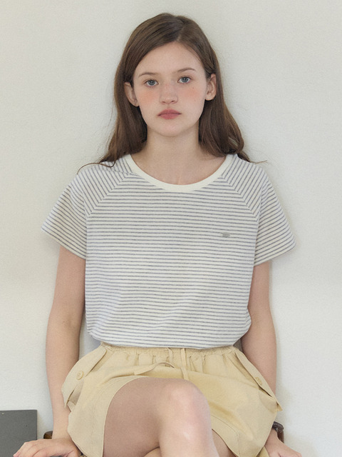 [아워호프] 스트라이프 래글런 하프슬리브 티셔츠 - 그레이