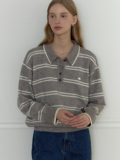 [아워호프] 캐롤린 스트라이프 카라 니트 - 멜란지 그레이