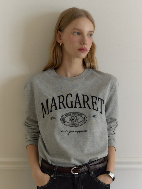 [아워호프] 마가렛 엠브로더리 실키 슬리브 티셔츠 - 멜란지 그레이