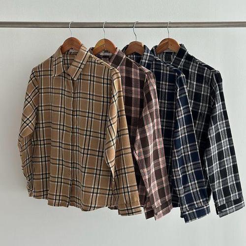 [옷자락]여성 가을용 기본 체크 셔츠 간절기 데일리 블라우스
