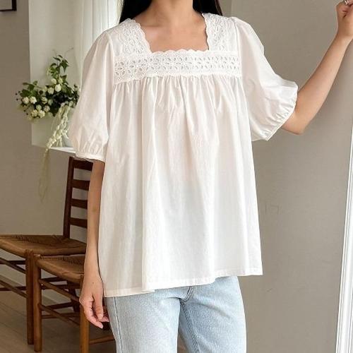 [다잇템][다잇템] 여자 박스 펀칭 스퀘어넥 꽃무늬 레이스 벌룬 블라우스_22145050_588872