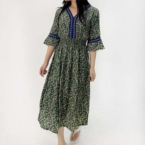 [다잇템_패션]여성 꽃무늬 후레아 고무줄 그런지 롱 휴양지룩