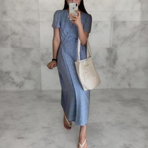 [다잇템_패션]여성 사랑스러운 꽃무늬 V넥 패턴 랩 원피스